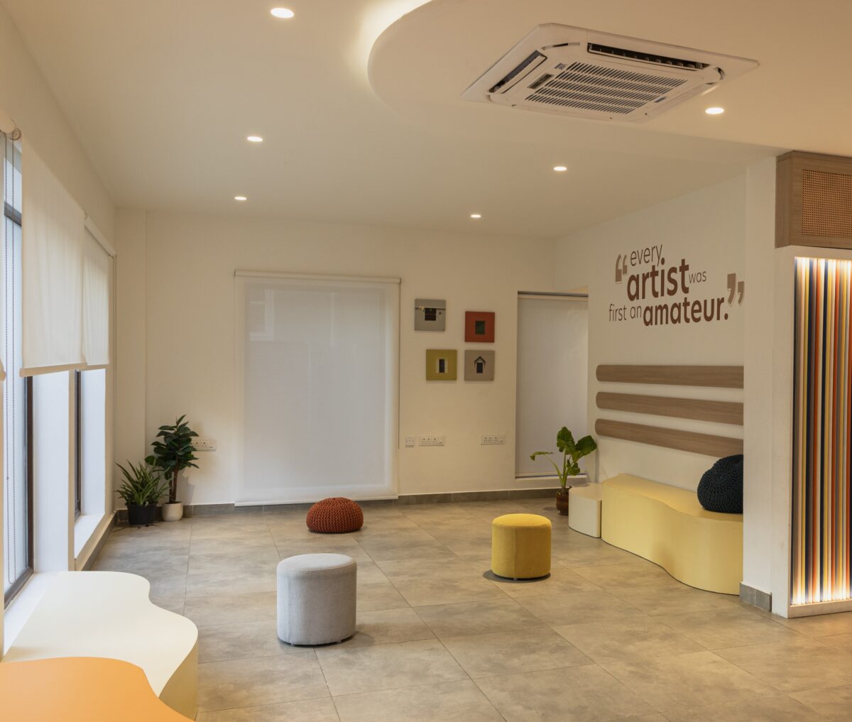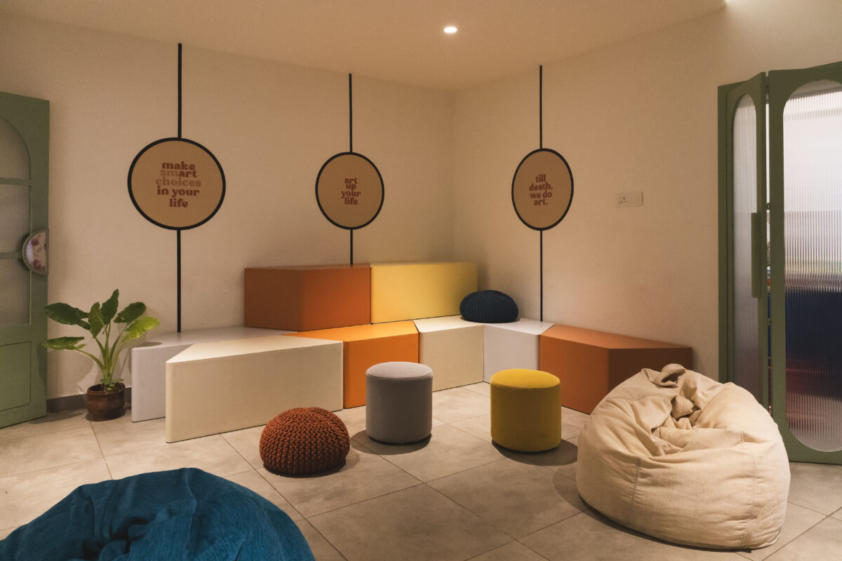 A spacious creative space ideal for art-led workshops, learning sessions, and hands-on activities. The artistic setup and welcoming ambiance support flexible layouts and comfortable interaction. The space includes thoughtfully designed areas that allow for different seating and activity arrangements within the same venue.