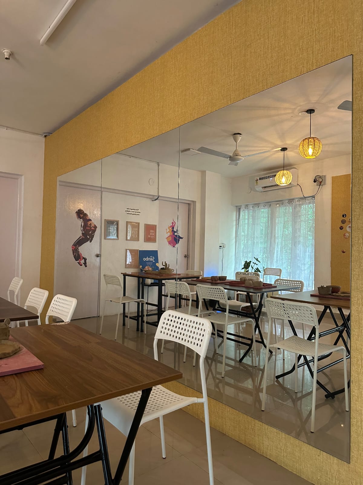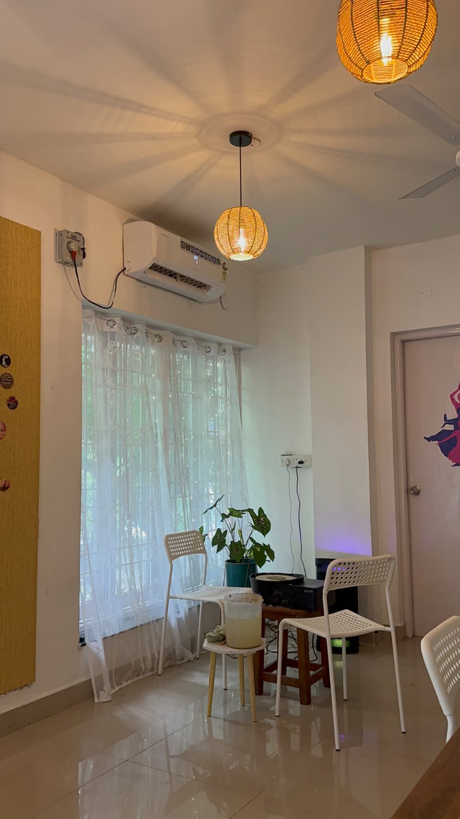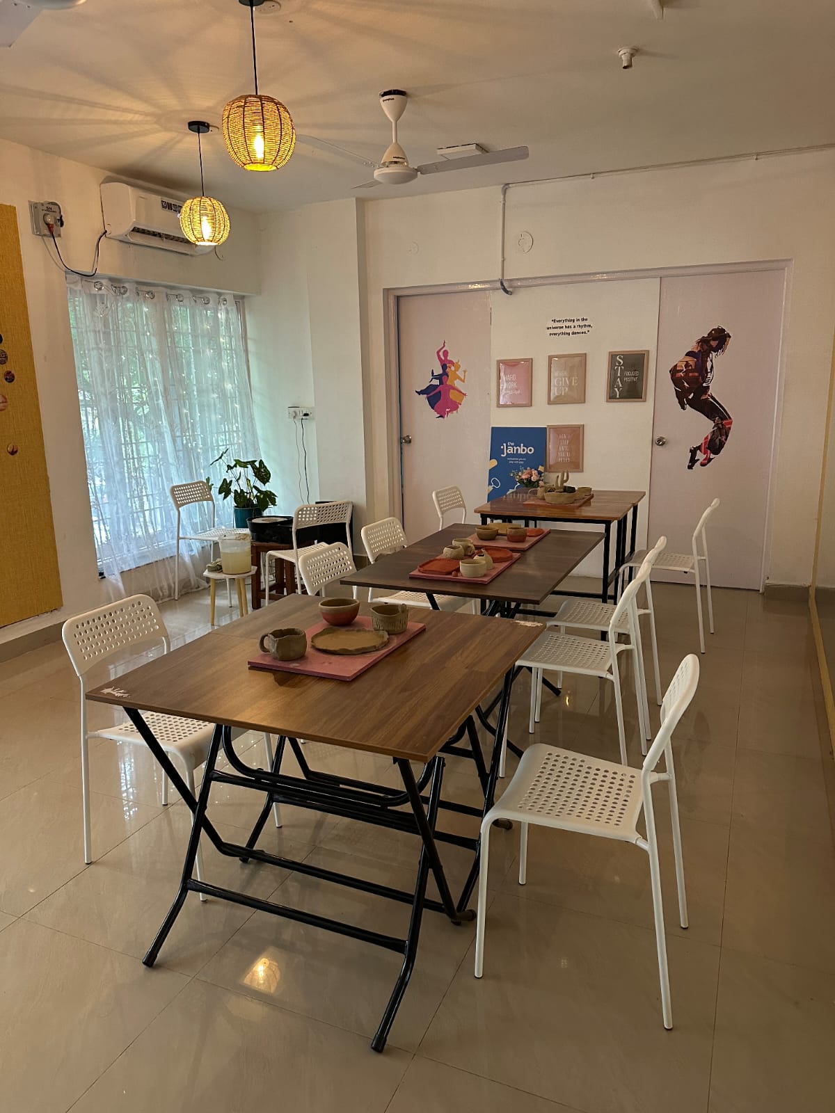 A calm, well-organised space suited for workshops and small group sessions, designed to support focused and interactive activities, with a TV available for presentations and discussions.