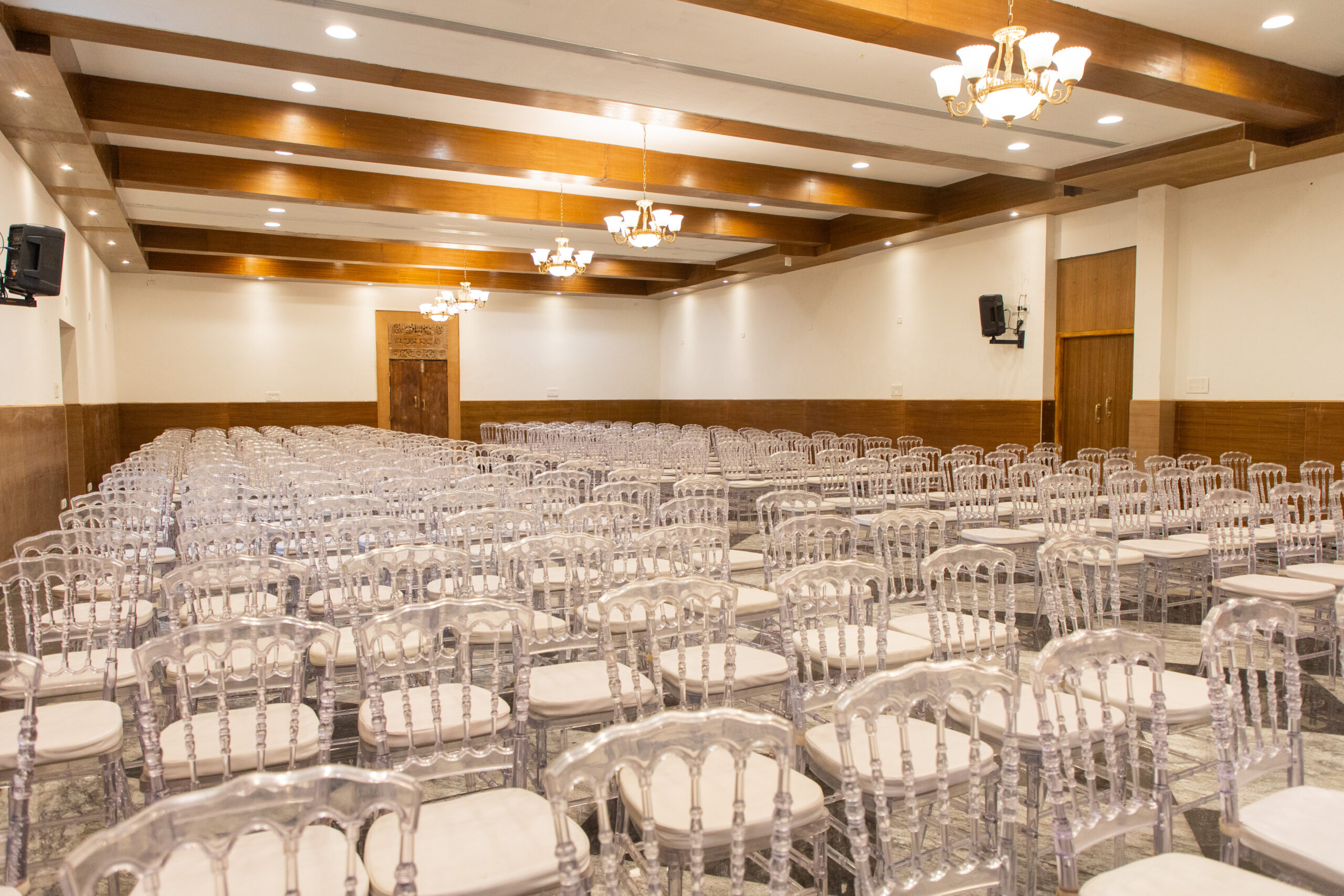 An elegant Chettinad-inspired hall featuring rich wood accents, warm terracotta tones, and classic columns. Fully air-conditioned and spacious, it’s ideal for weddings, receptions, and intimate cultural gatherings. The timeless architecture and soft lighting create a refined, heritage ambience for any celebration.