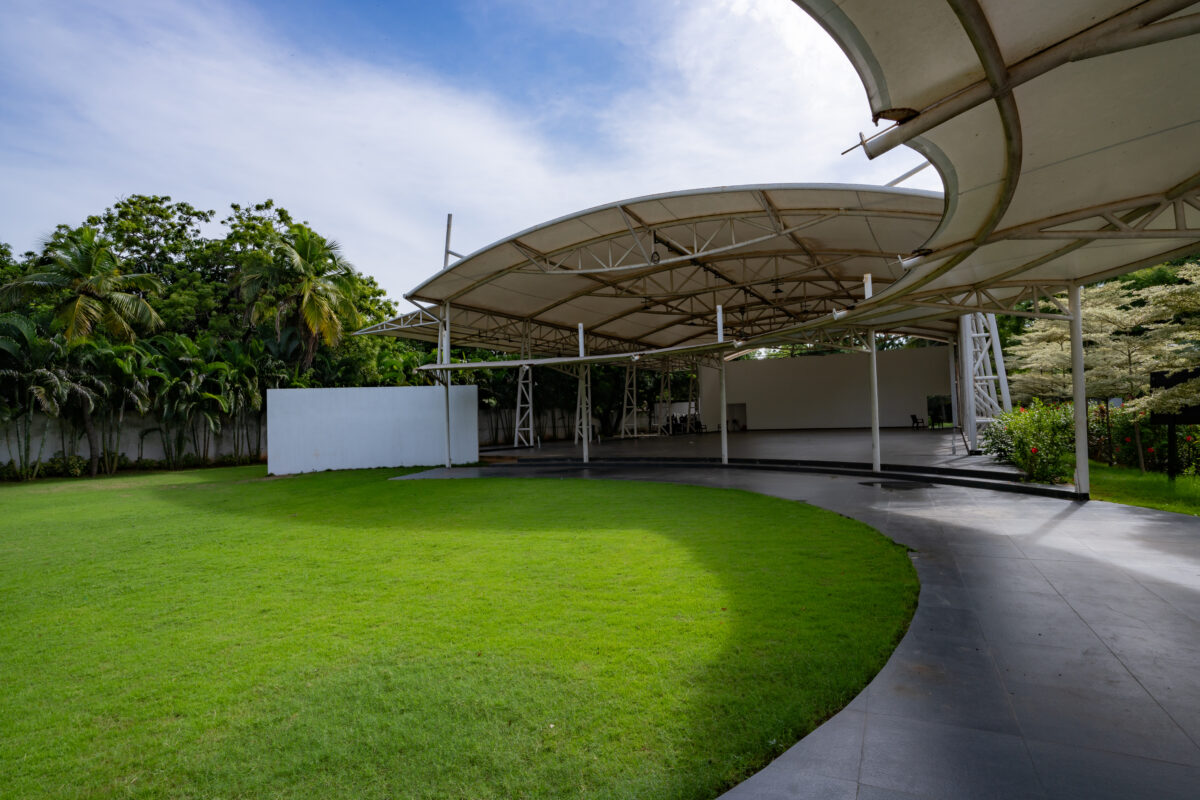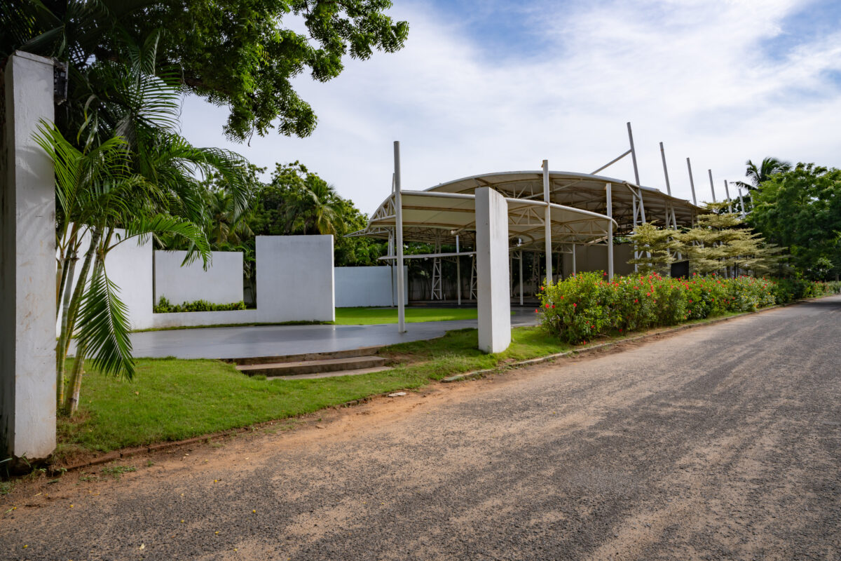 An elegant pavilion-style event space set within the lush landscape along Chennai’s East Coast Road. Blending classic architecture with modern comforts, the venue offers both covered and open-air settings, kept cool and comfortable with multiple HVLS fans throughout. Its flexible layout makes it a great choice for weddings, corporate events, and special celebrations in a refined, scenic setting.