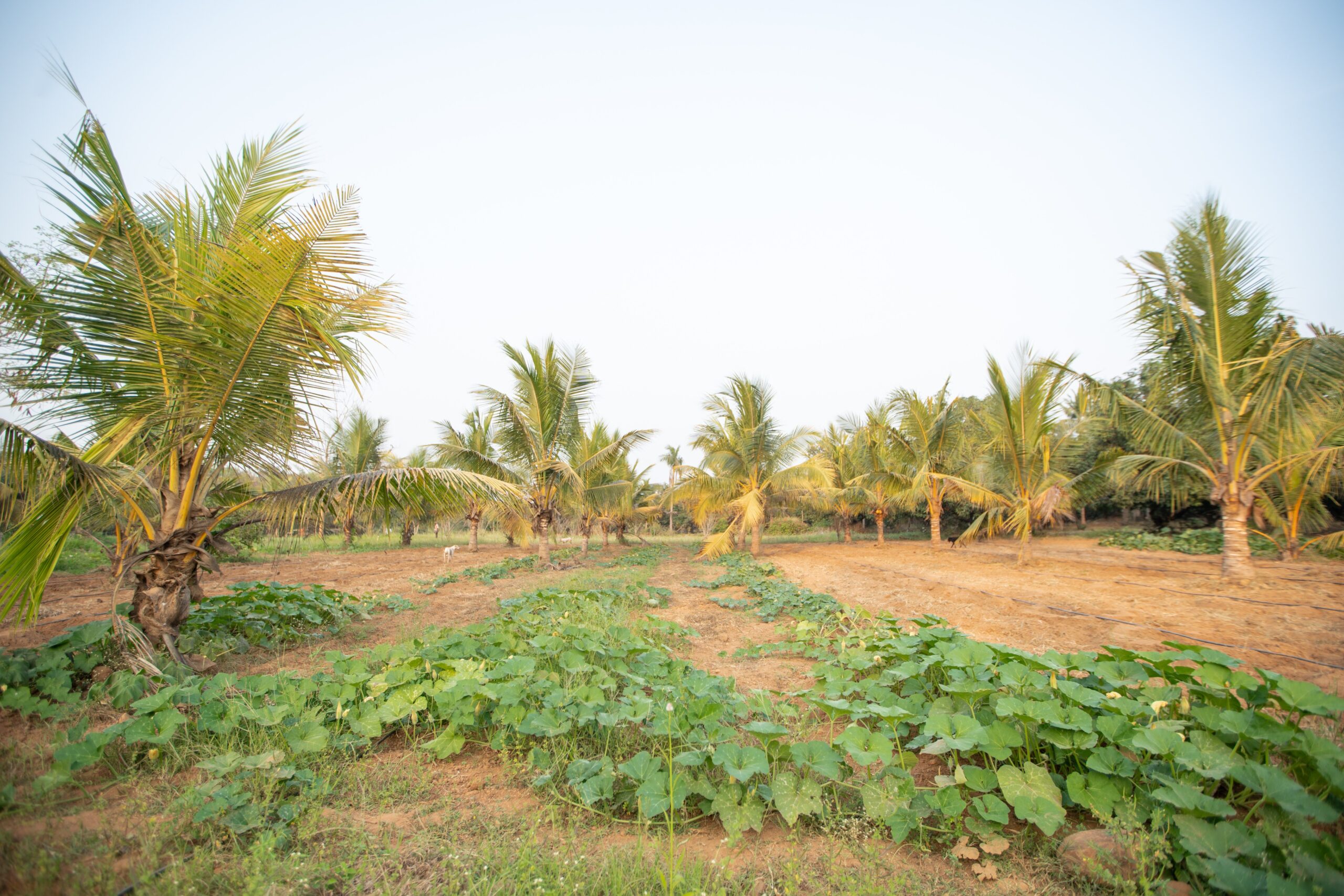 Tucked away in Velagapuram Village, just 1.5 hours from Chennai city centre, this 81-acre farm is a lush paradise filled with mango trees, bamboo groves, medicinal plants, organic fruits and vegetables, herbs, and friendly farm animals.