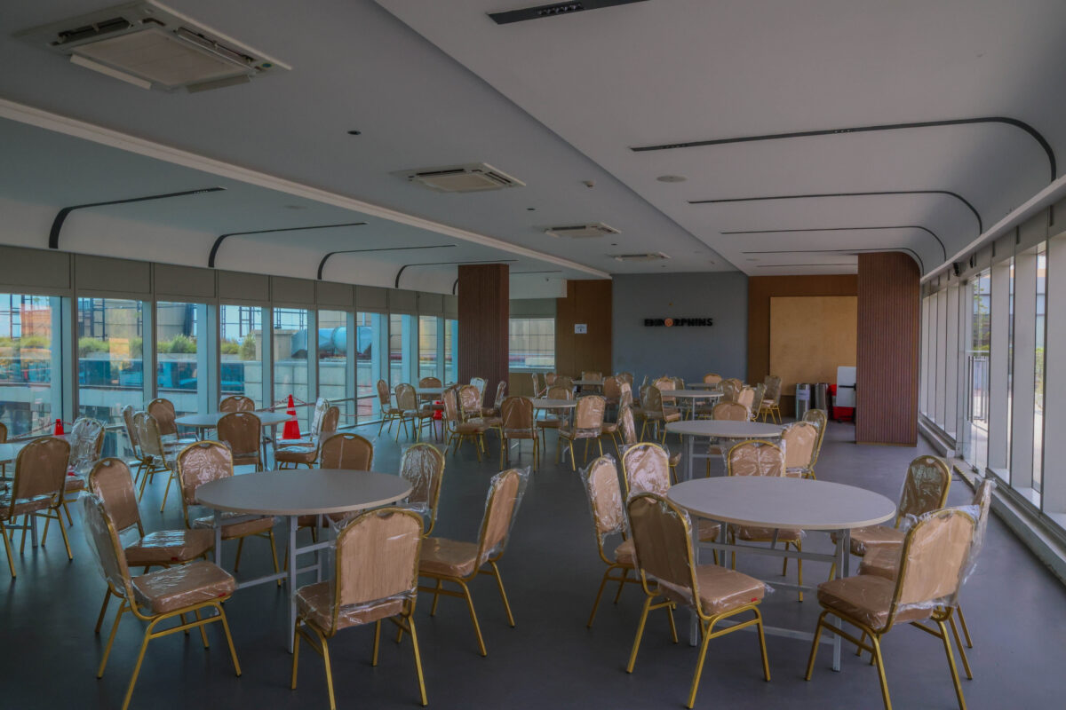 Elegant & Modern Design: A sophisticated indoor hall featuring contemporary design, leading out to a huge dedicated outdoor terrace perfect for welcoming guests, pre-function cocktails, or breakout activities.