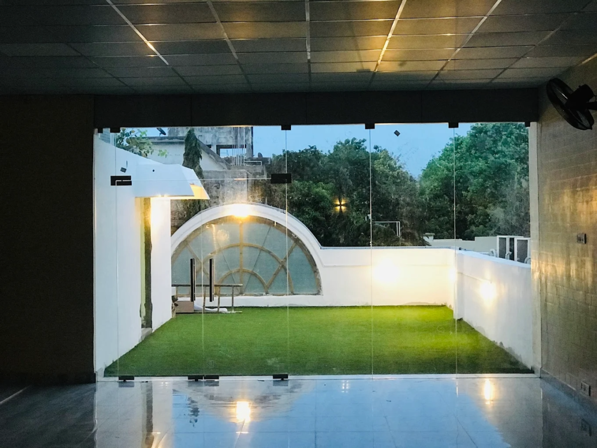 A bright, versatile event space with an open indoor layout that allows for flexible setups. Suitable for workshops, professional, and casual events, the rooftop lawn provides a convenient outdoor extension for additional activities or breakout use.